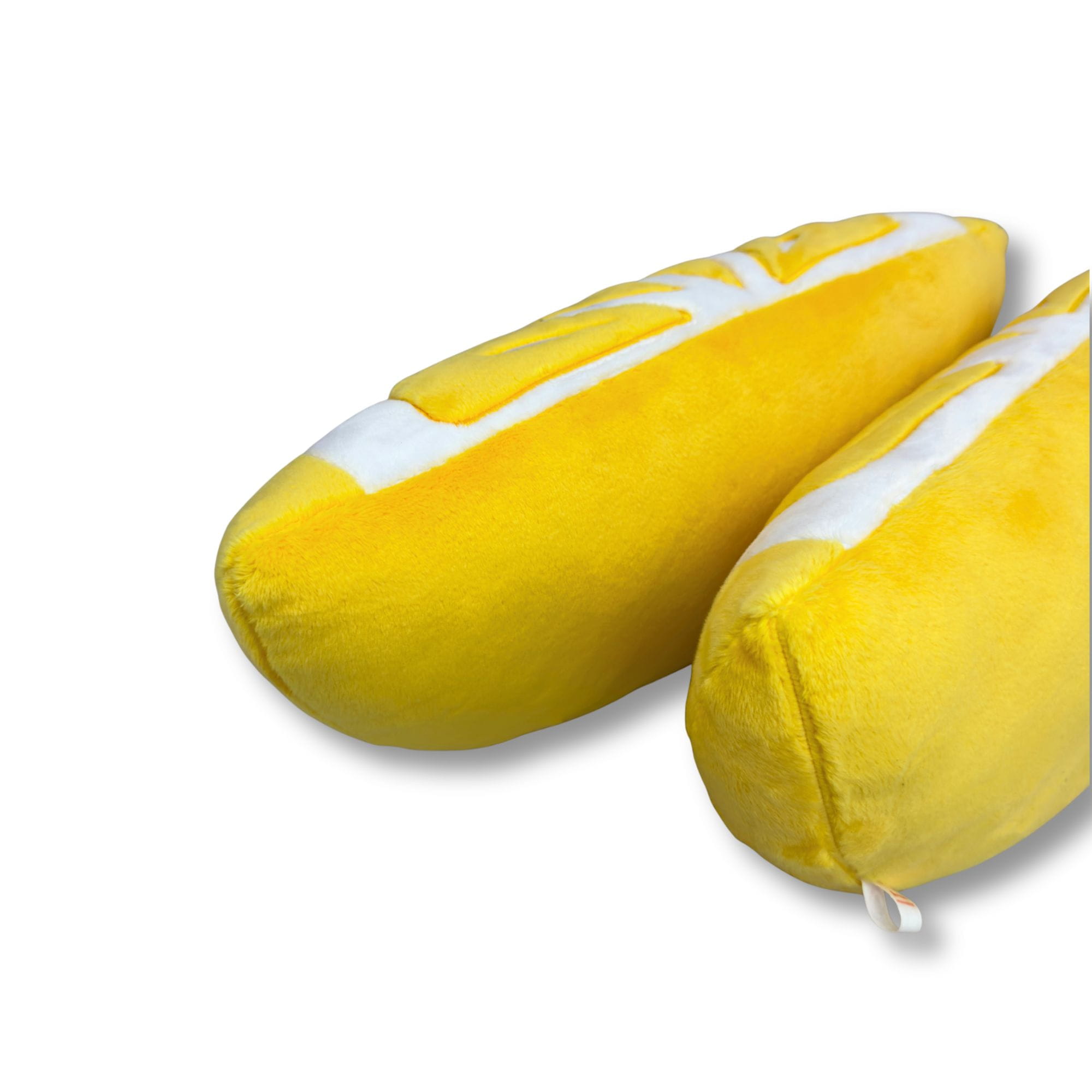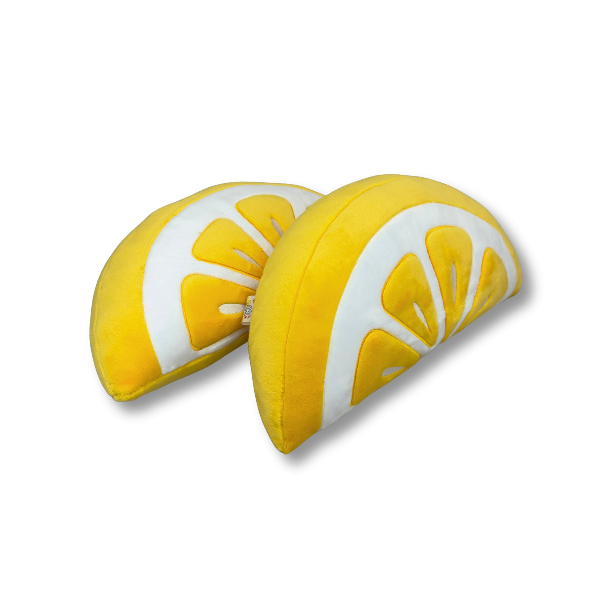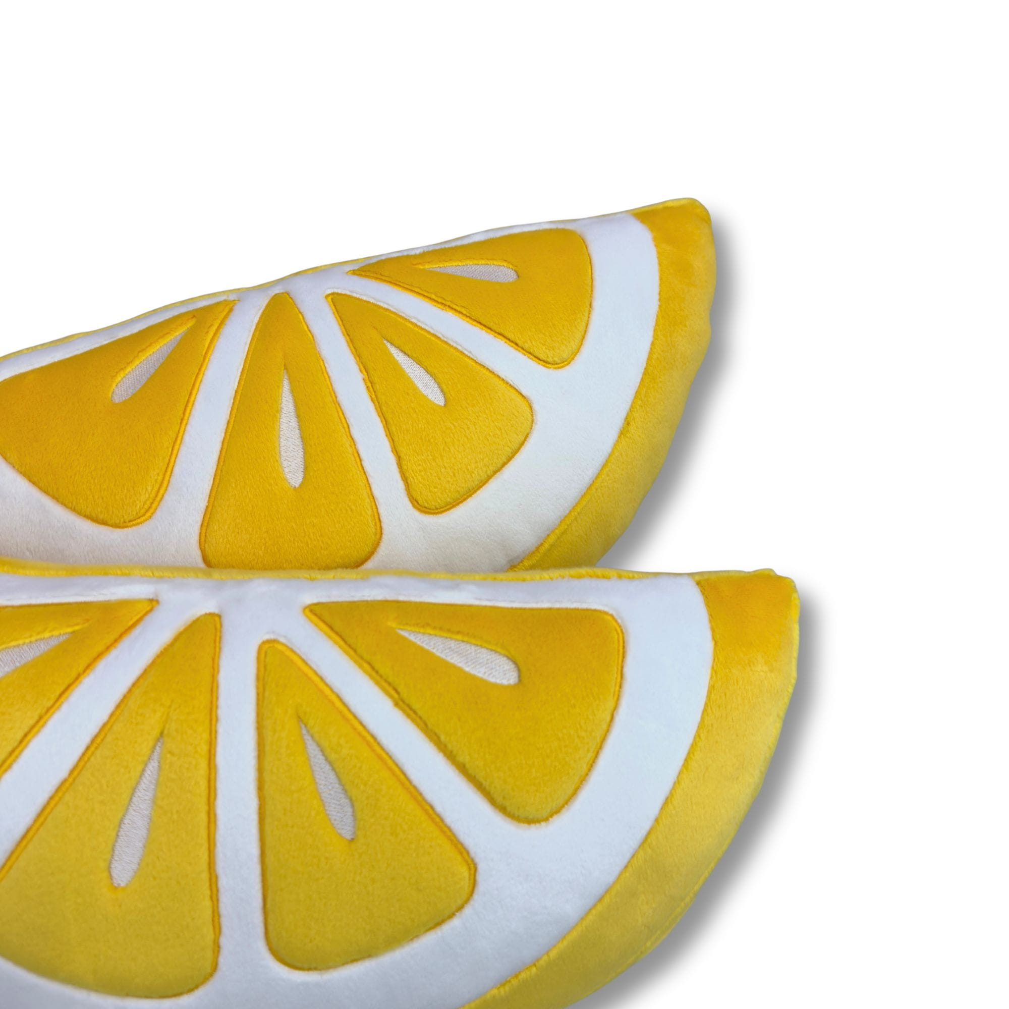 Poduszka w kształcie połówki plastra cytryny.