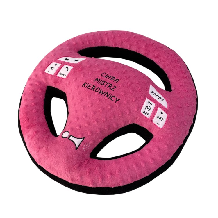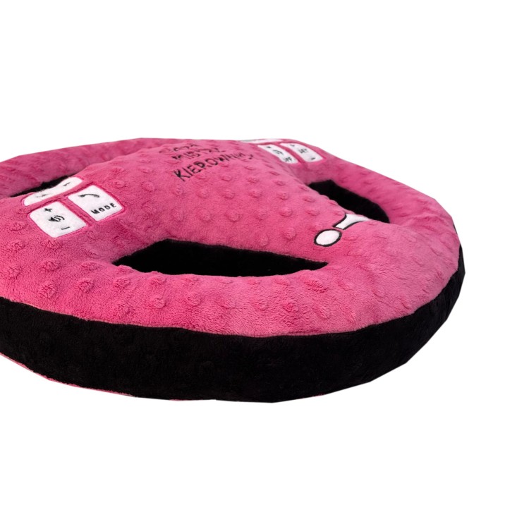 Poduszka w kształcie kierownicy dla prawdziwego fana czterech kółek.