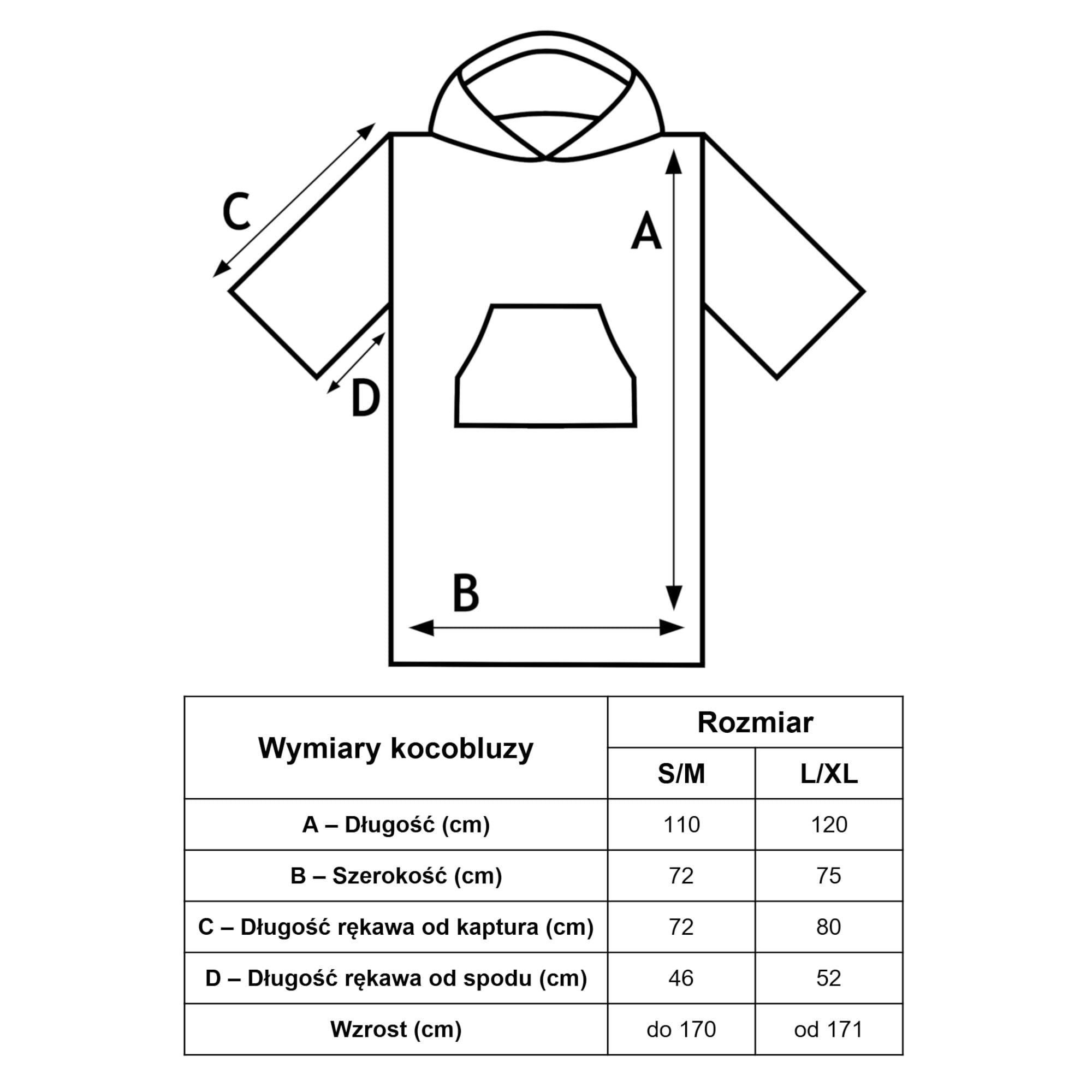 Prosimy o przemyślane zakupy, kocobluzy są szyte na zamówienie zgodnie z wybranymi parametrami. Istnieje możliwość modyfikacji poszczególnych wymiarów, np dłuższe rękawy, węższa kocobluza itp., w takim przypadku prosimy o kontakt przed złożeniem zamówienia.