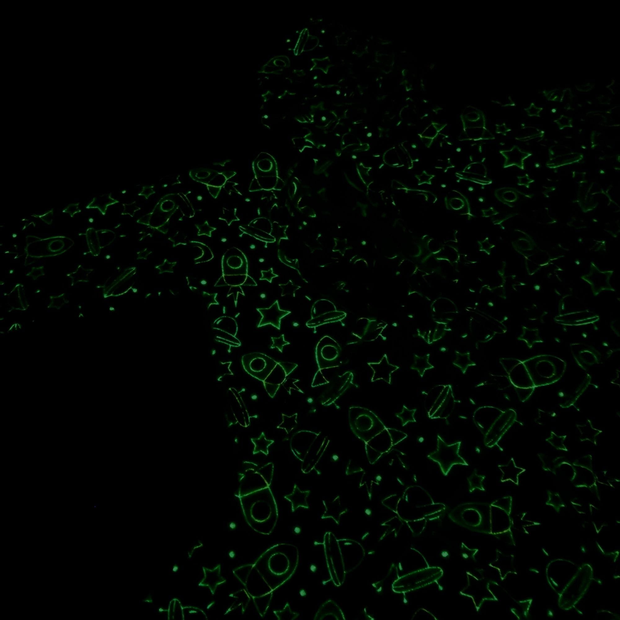 Kocobluza delikatnie świeci w ciemności przy dobrym naświetleniu ✨ Ze względu na gęsty wzór materiał nie naświetla się tak dobrze jak nasze pozostałe kocobluzy, daje za to delikatny blask.
