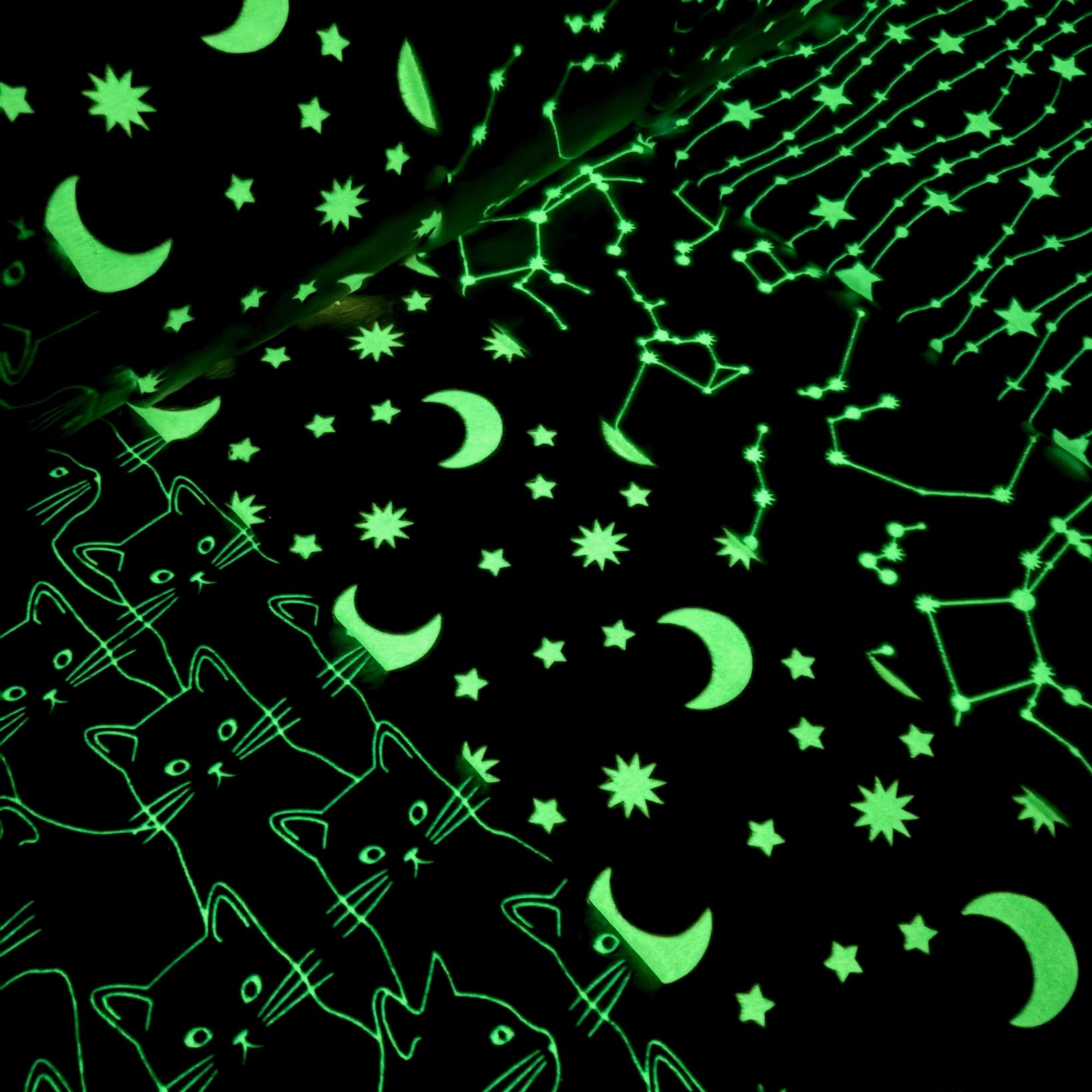 Materiał świecący aktywuje się po naświetleniu i świeci przez ok. 10–15 minut – im dłuższe i mocniejsze naświetlenie, tym intensywniejszy efekt świecenia w ciemności.