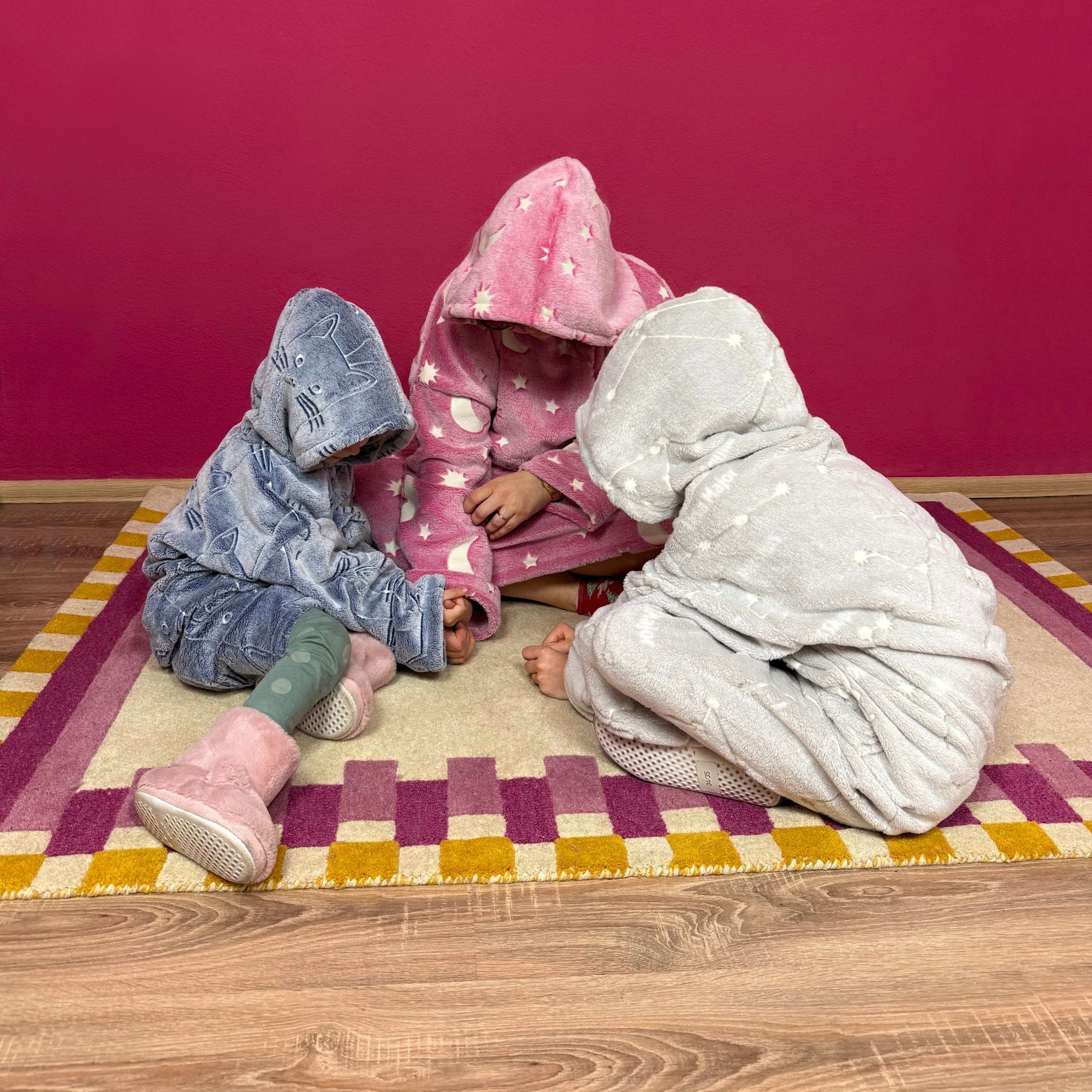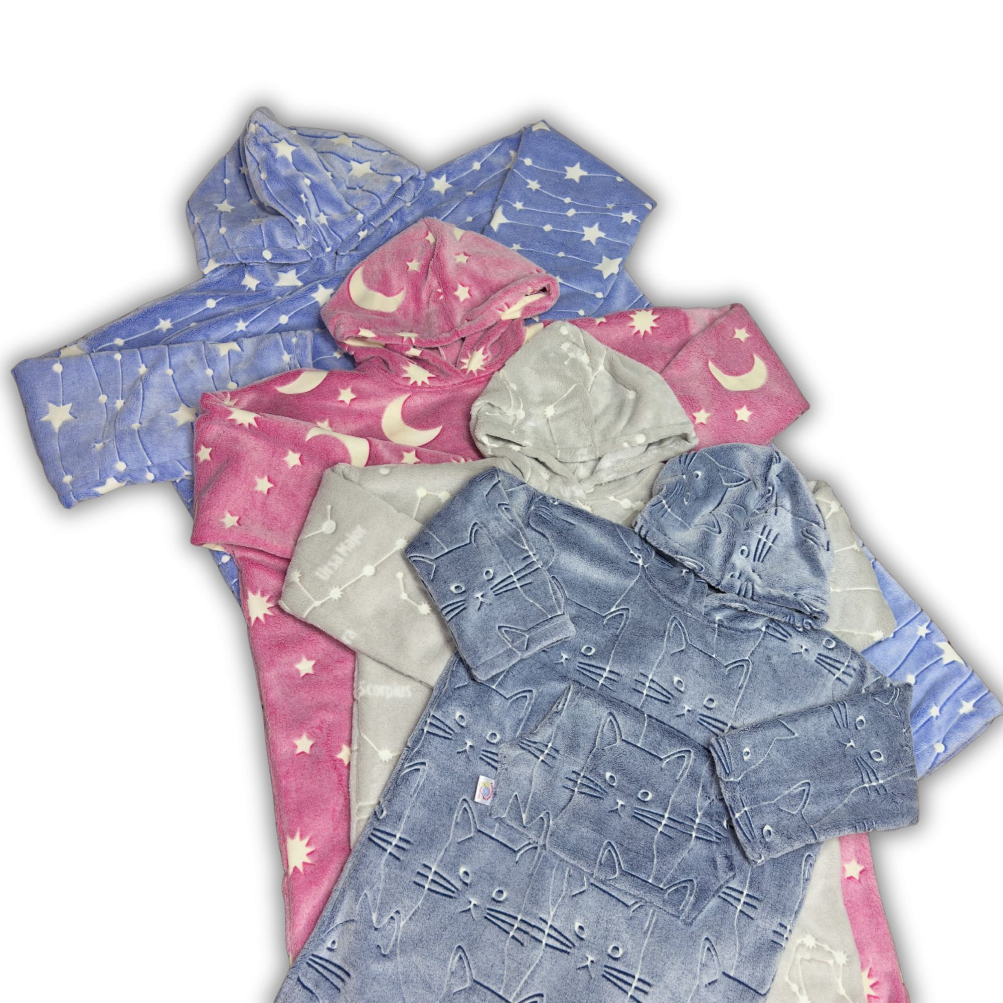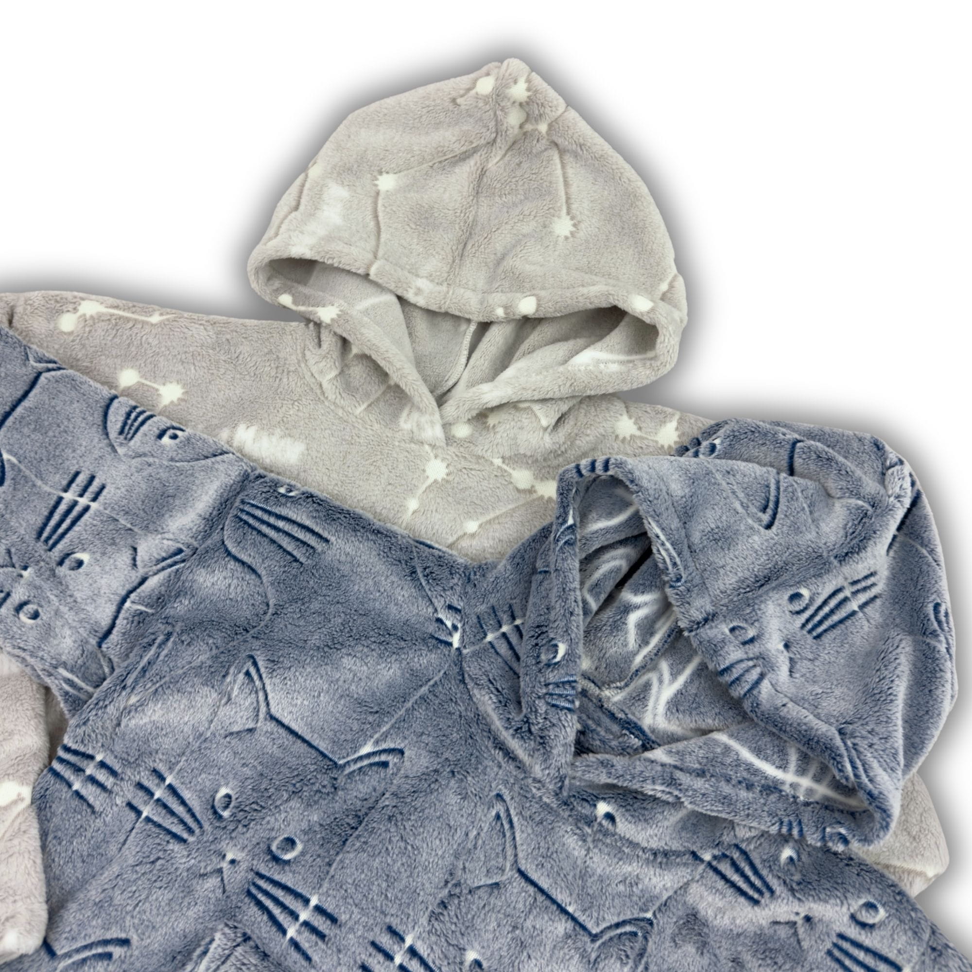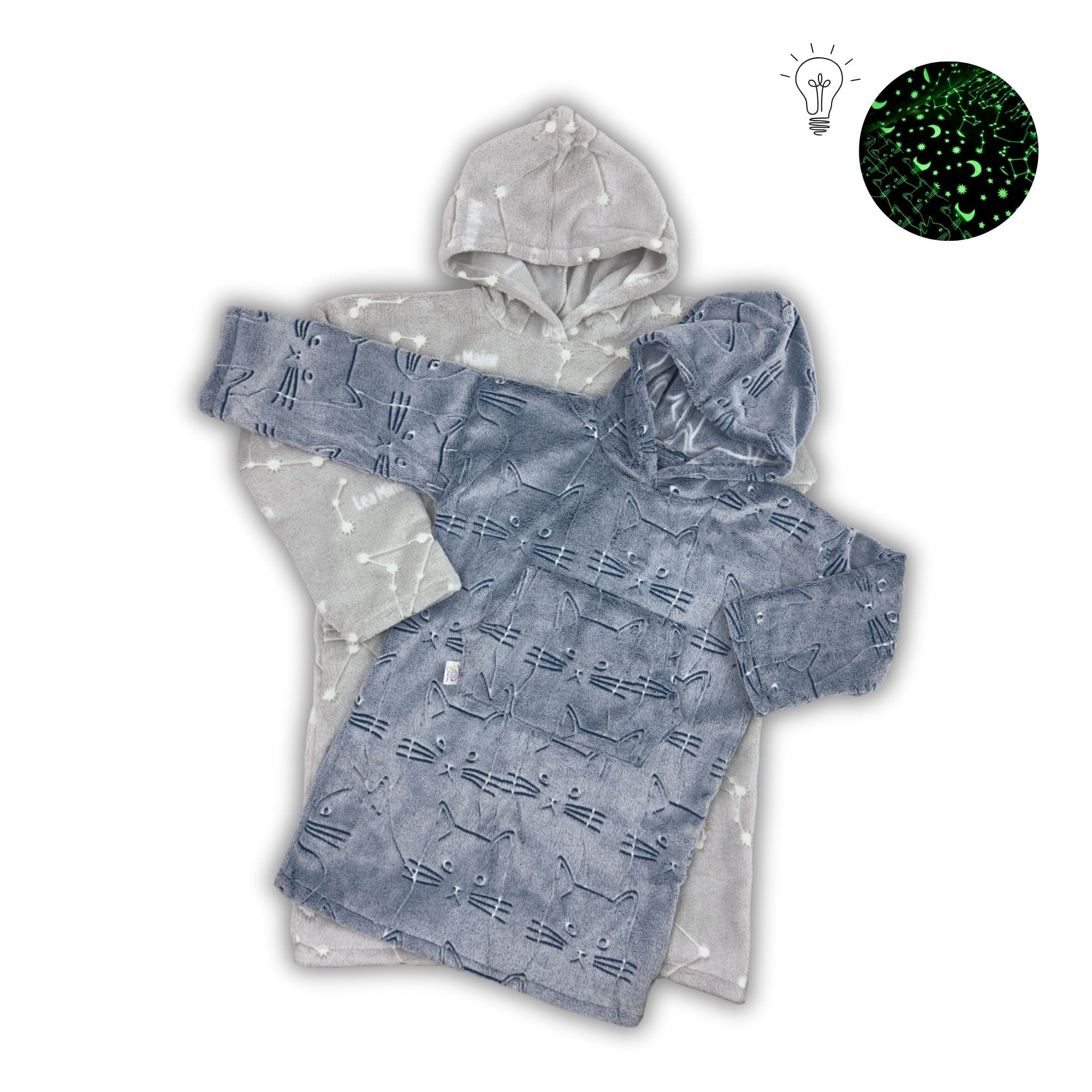 Kocobluza dla dzieci z materiałów świecących w ciemności – miękka bluza koc z kapturem | różne wzory i rozmiary