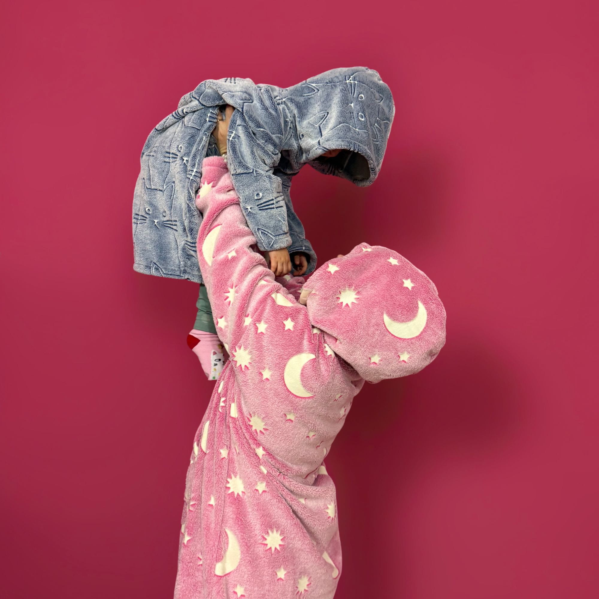 Kocobluza, czyli połączenie koca i bluzy zapewniające maksymalny komfort i ciepło. Wyjątkowa kocobluza, która łączy komfort z magicznym efektem świecenia w ciemności ✨ Wykonana z wysokiej jakości, miękkich materiałów, zapewnia ciepło i wygodę podczas chłodnych wieczorów.