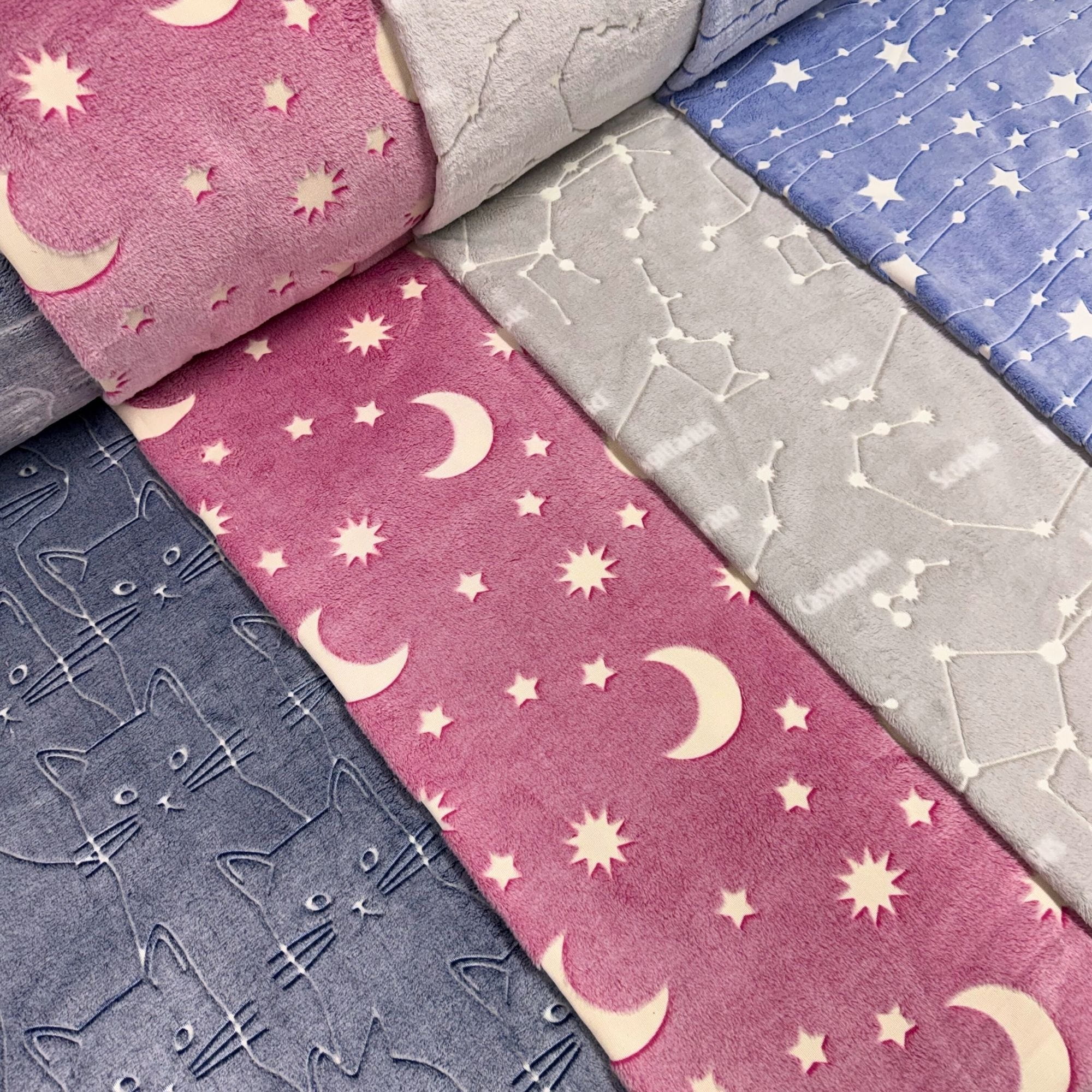 Lewa strona kocyka posiada włos na całej powierzchni, co daje przyjemne otulenie. Po prawej stronie, w miejscach które świecą, materiał jest bez włosa, dzięki czemu wzór jest wyraźny i efektowny.