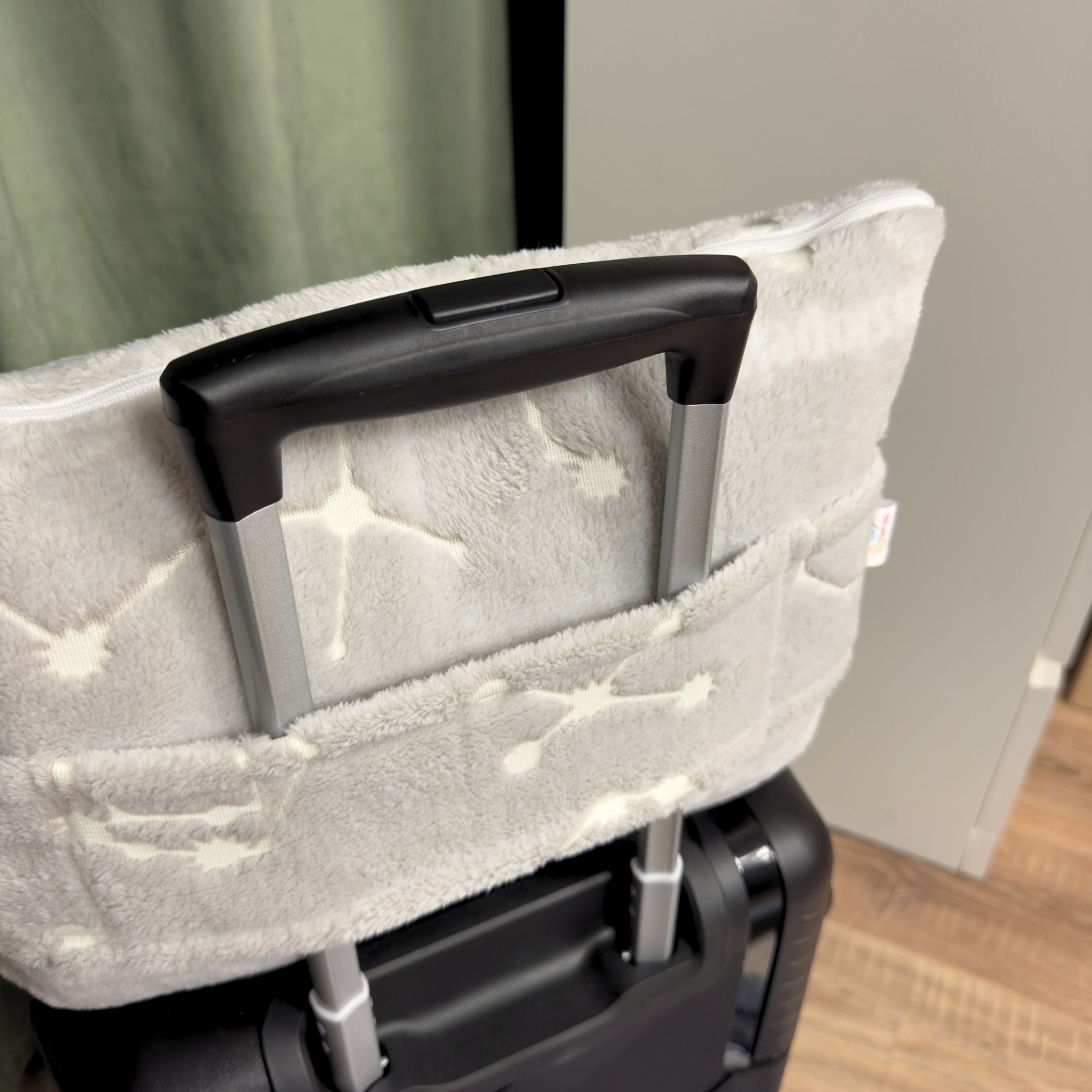 - Przemyślany wzór - poduszka posiada pasek umożliwiający przyczepienie jej do walizki oraz karabińczyk, aby przyczepić do plecaka