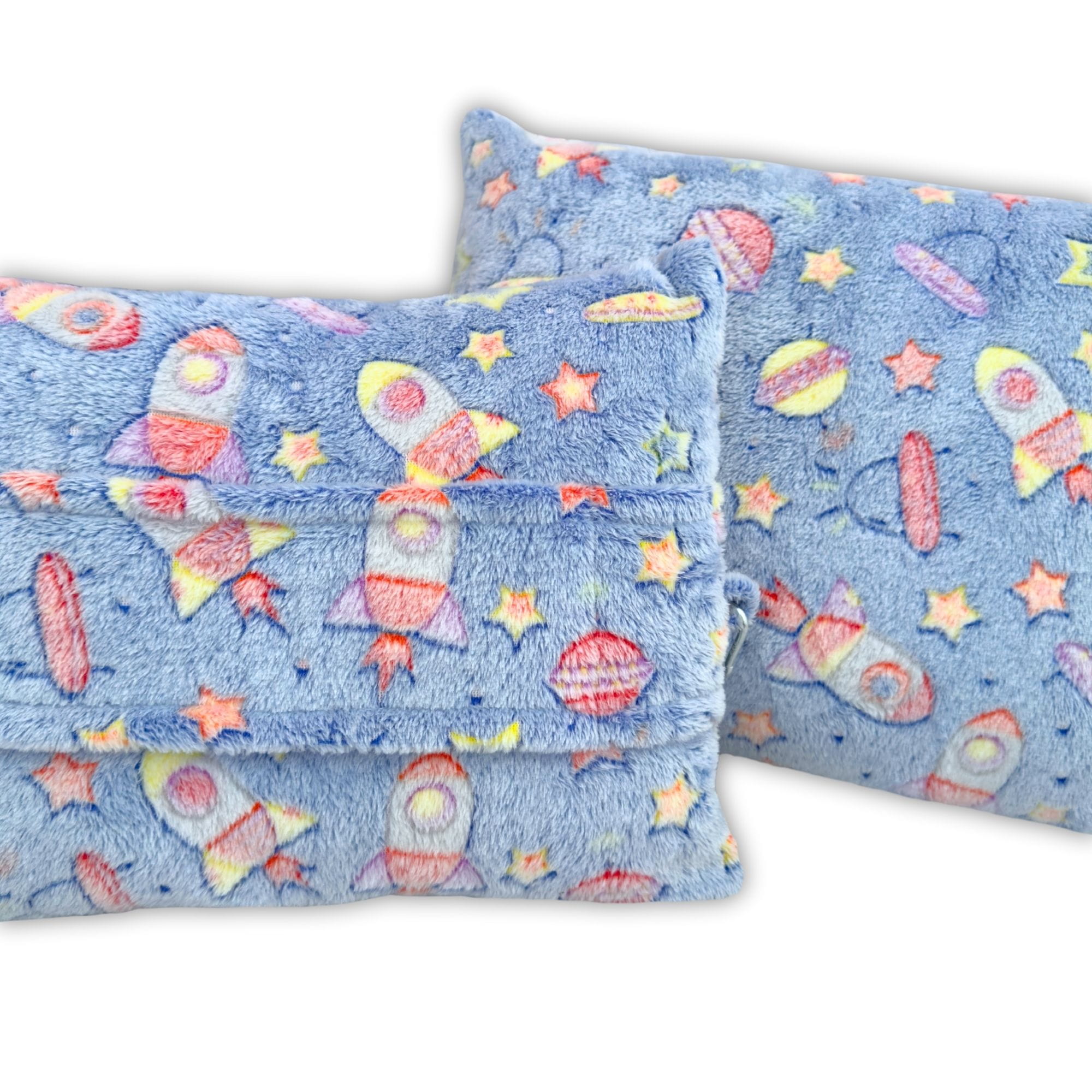 Kocopoduszka w rakiety personalizowna świecąca w ciemności - koc 150x200 cm i poduszka 2w1