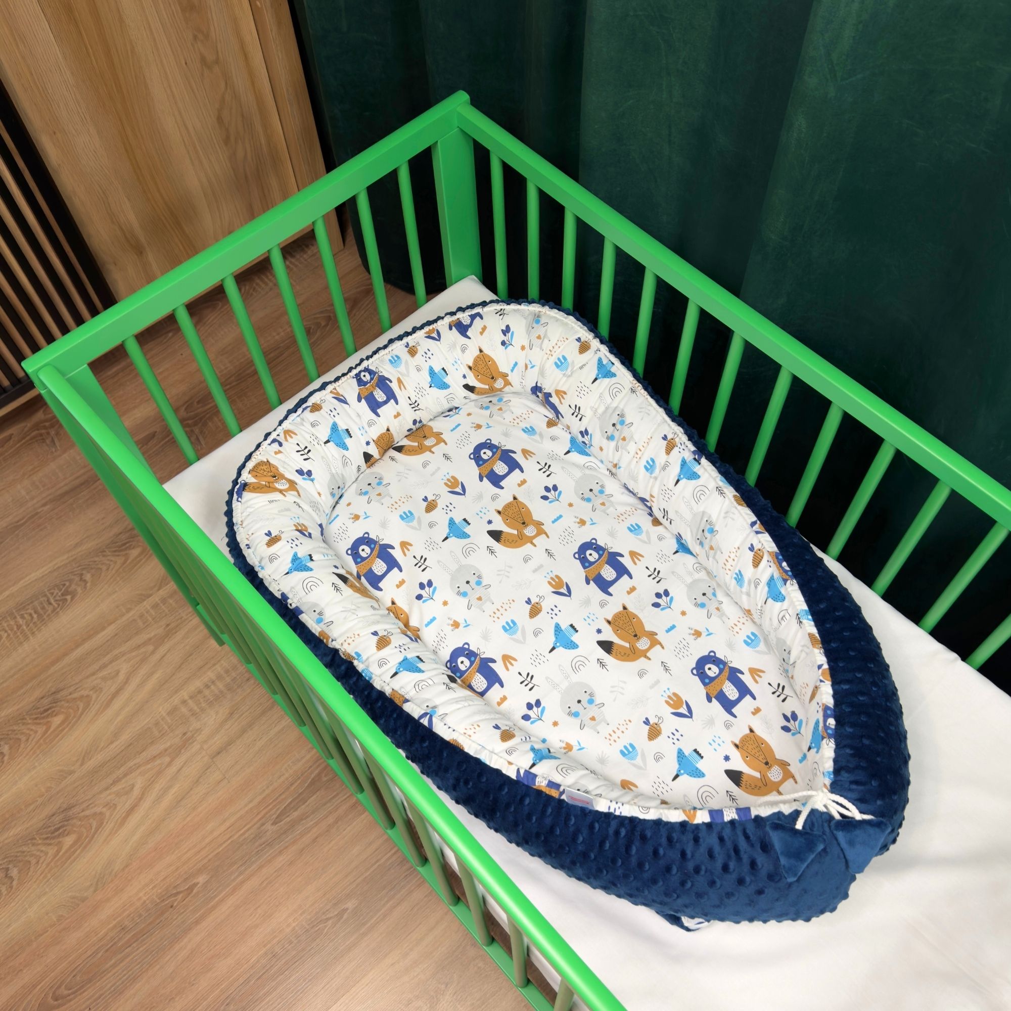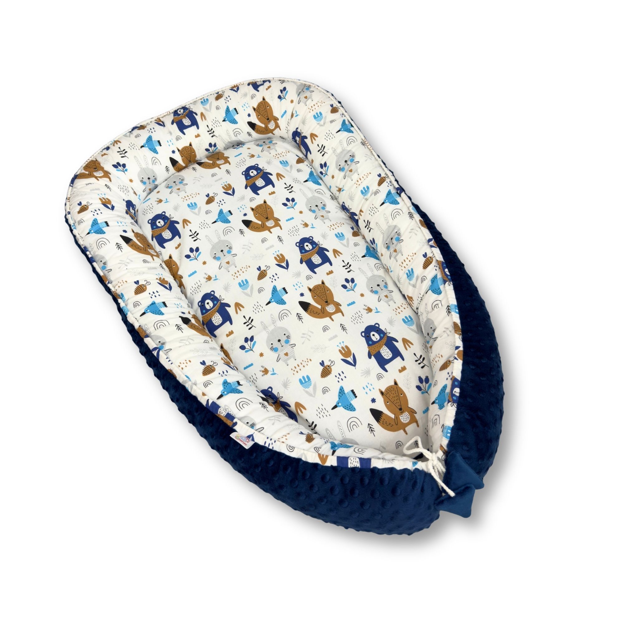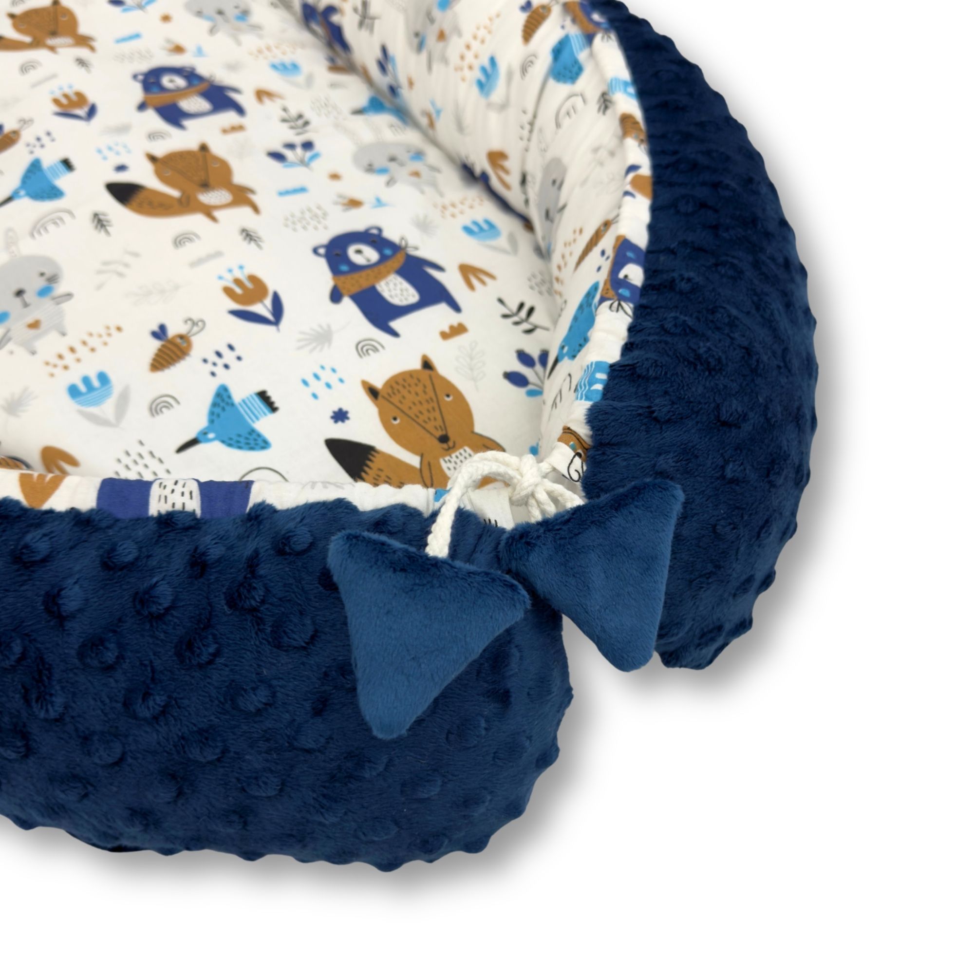 Kokon niemowlęcy bawełna Minky granatowy w misie – 2 wkłady w zestawie