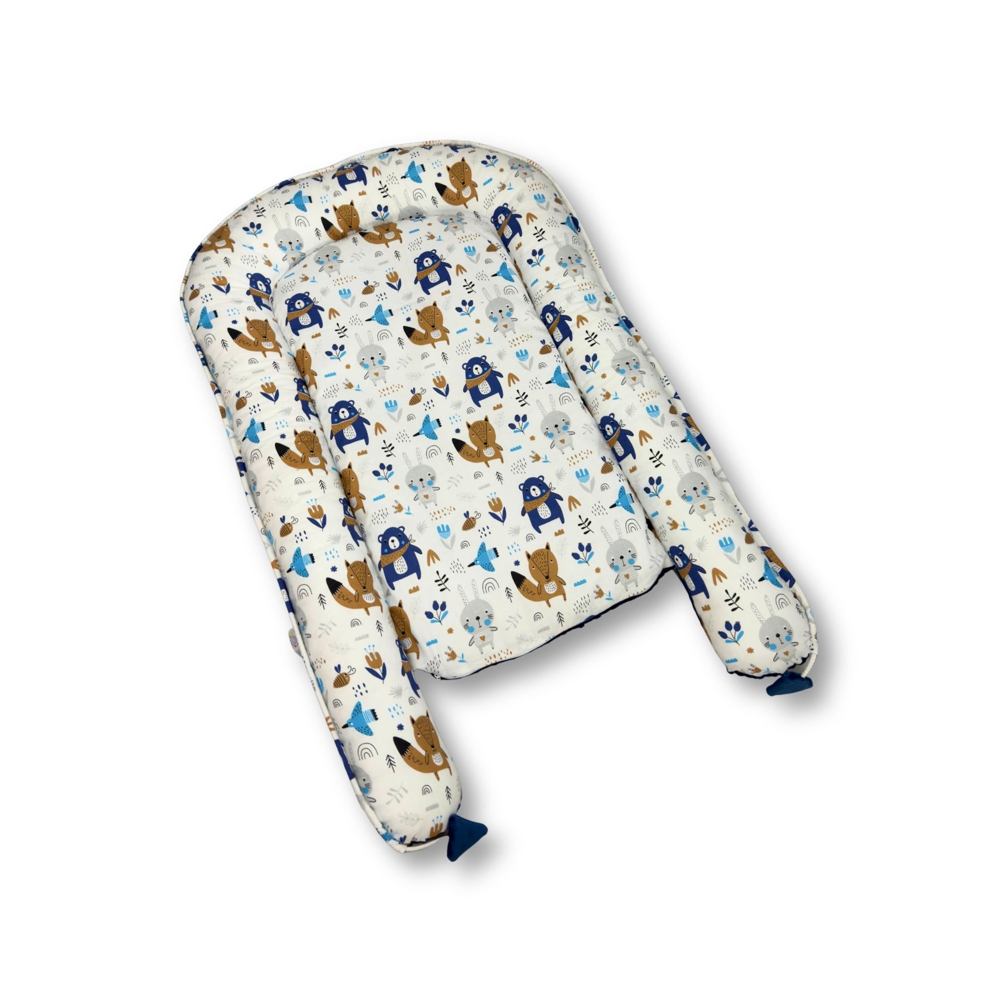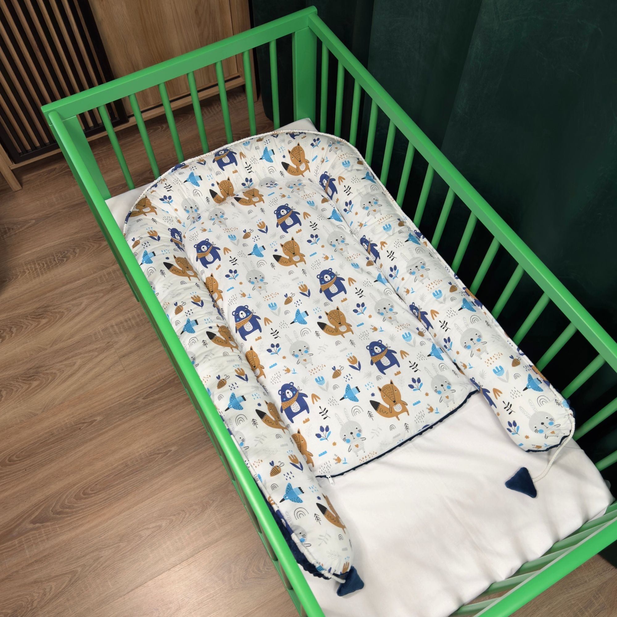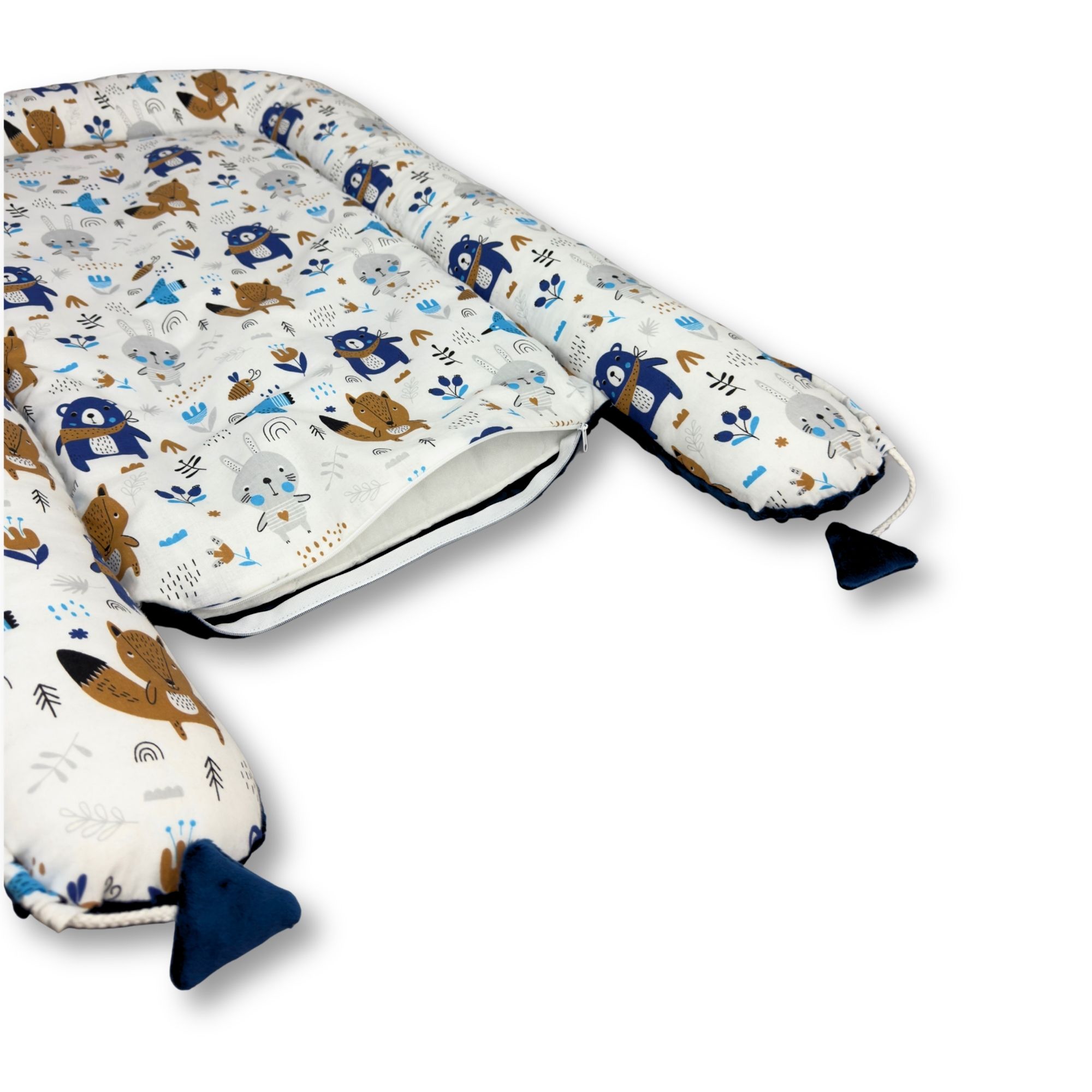 Kokon niemowlęcy bawełna Minky granatowy w misie – 2 wkłady w zestawie