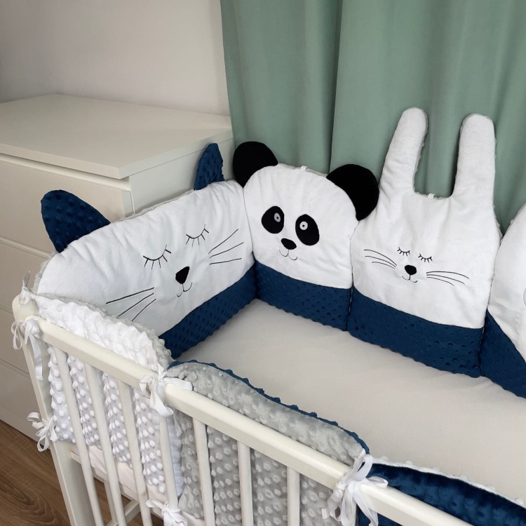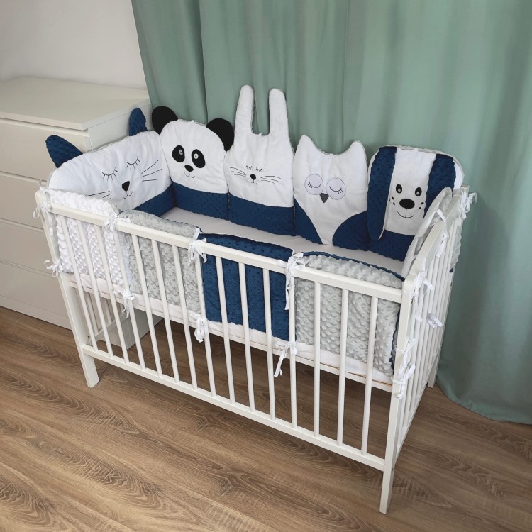 Poduszki "zwierzaki" posiadają również troczki u góry pozwalające przymocowanie ich na niższym poziomie łóżeczka.