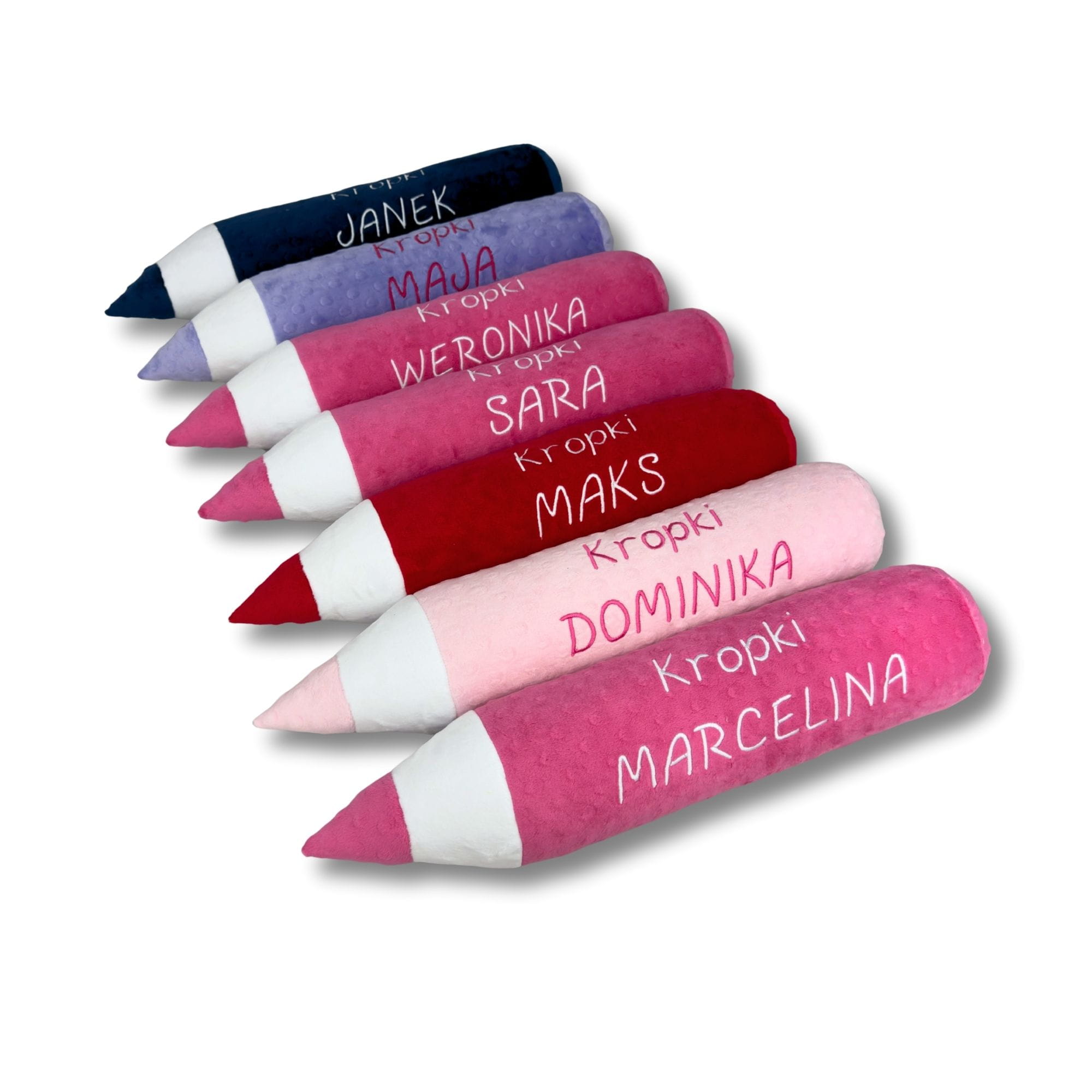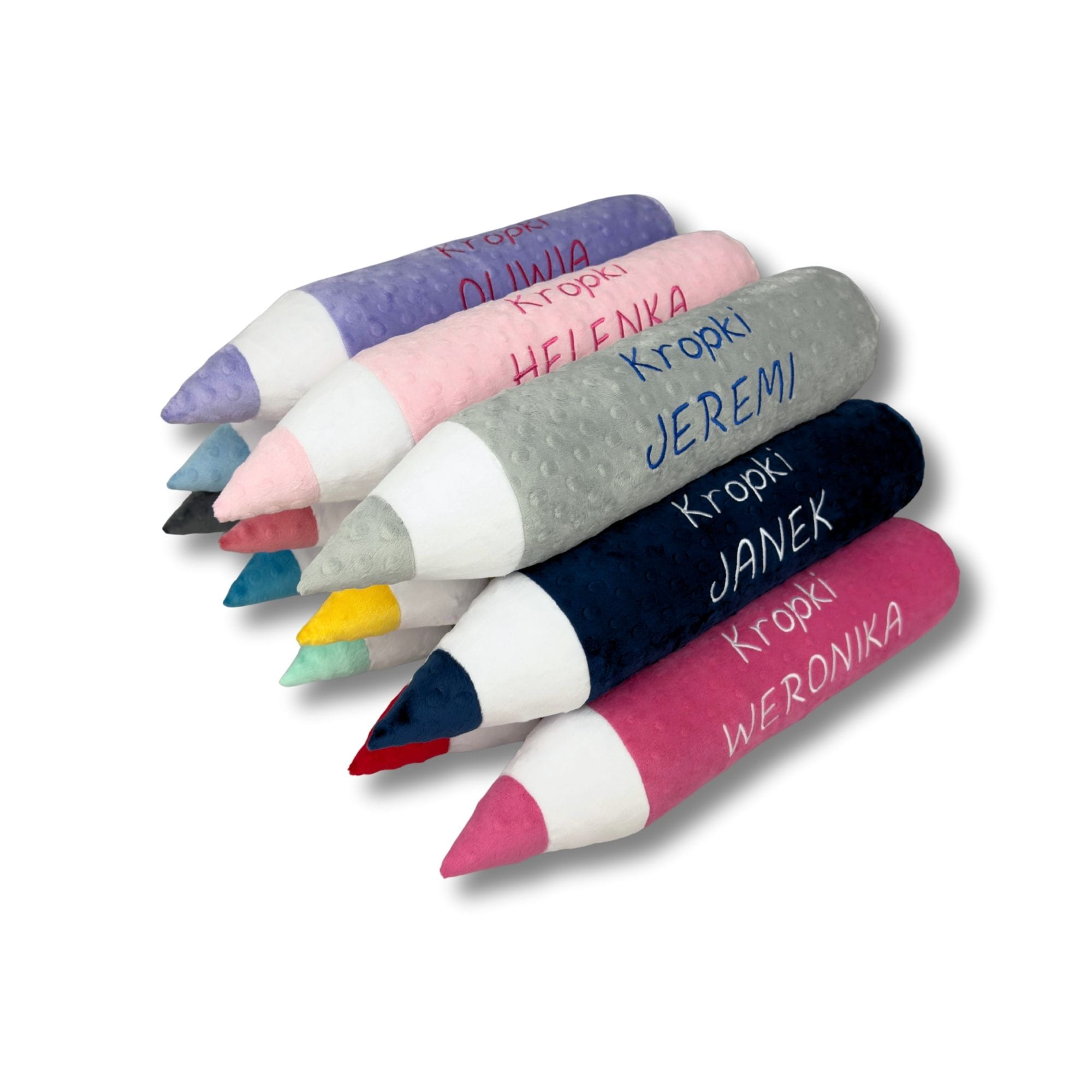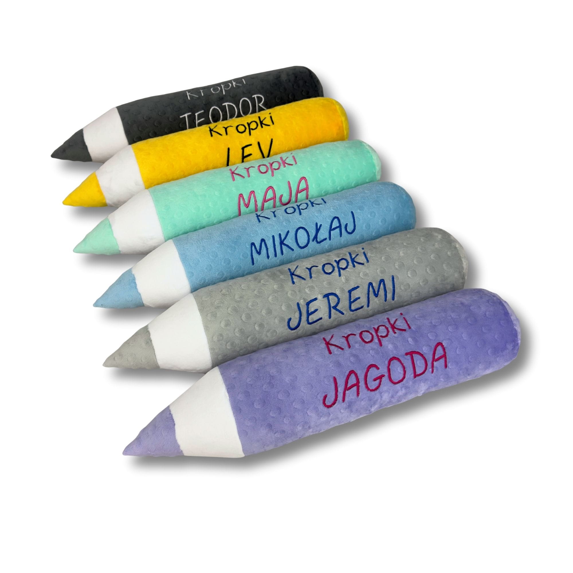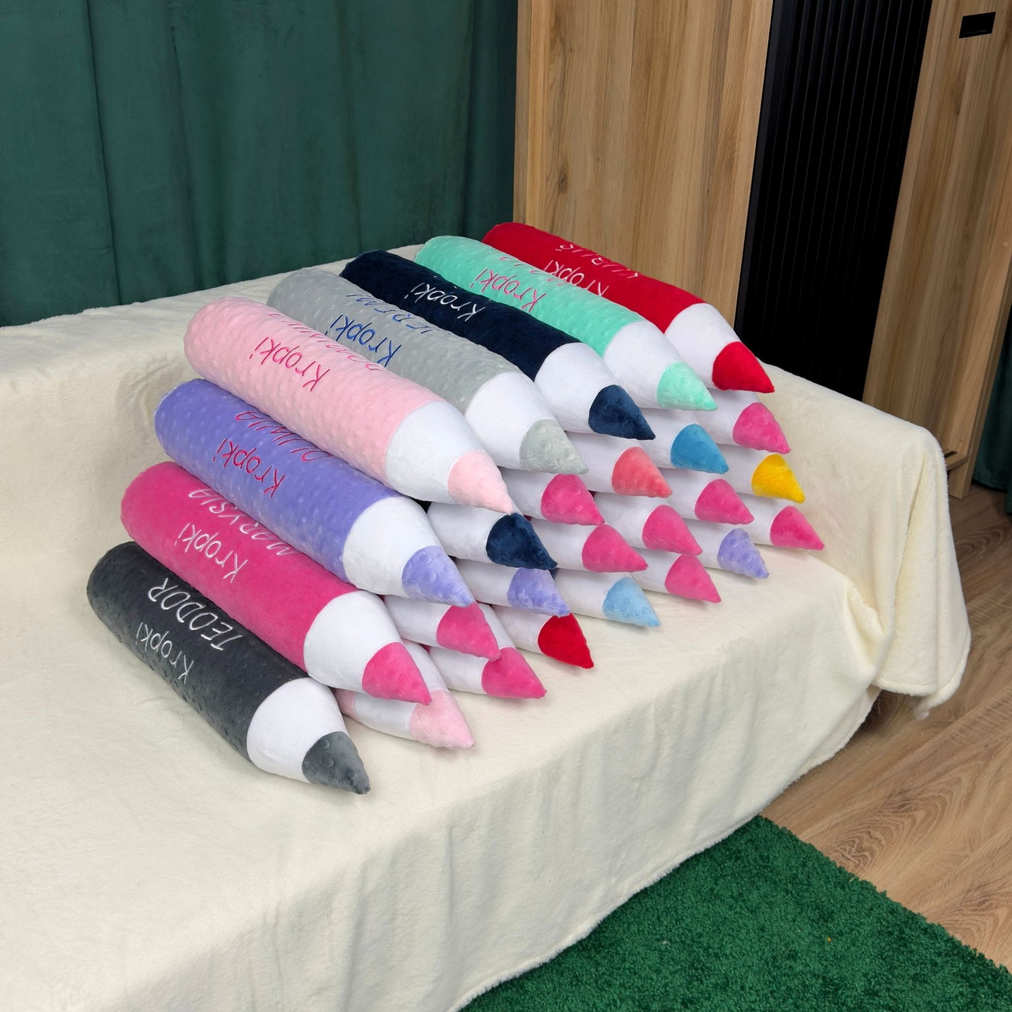 Każda poduszka kredka może zostać spersonalizowana haftem – imieniem dziecka lub nazwą grupy przedszkolnej, co czyni ją niepowtarzalnym upominkiem. Szeroki wybór kolorów pozwala dopasować produkt do aranżacji wnętrza.