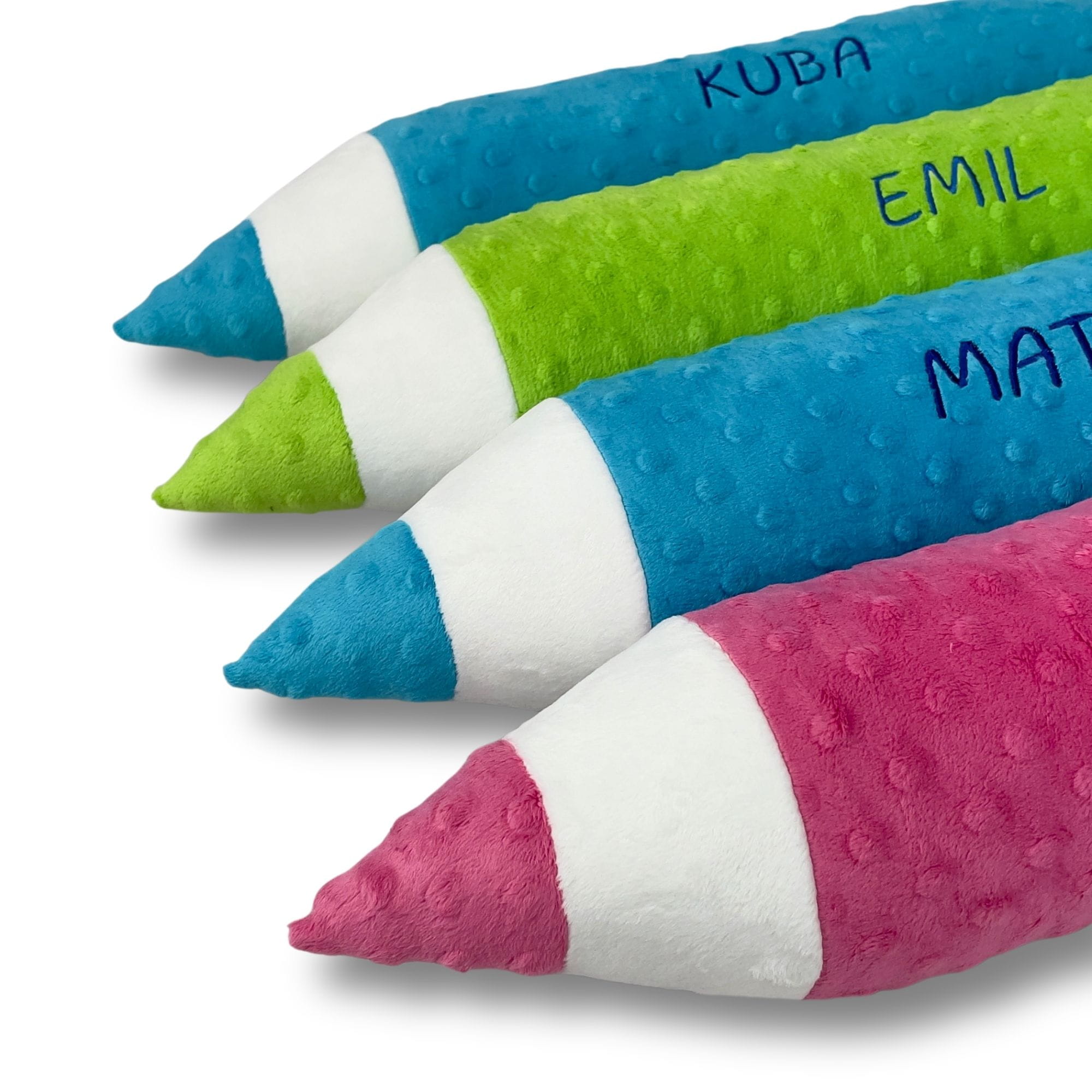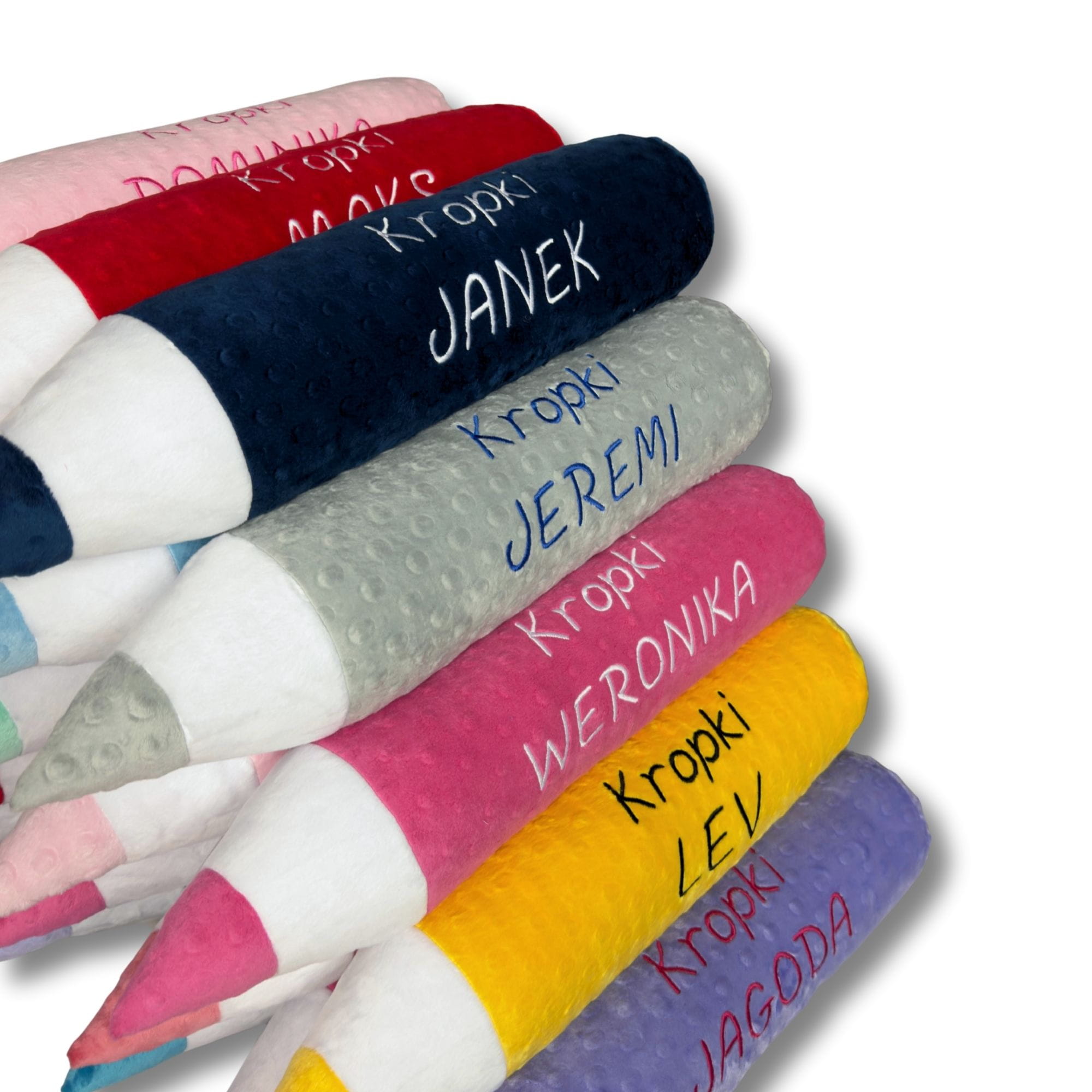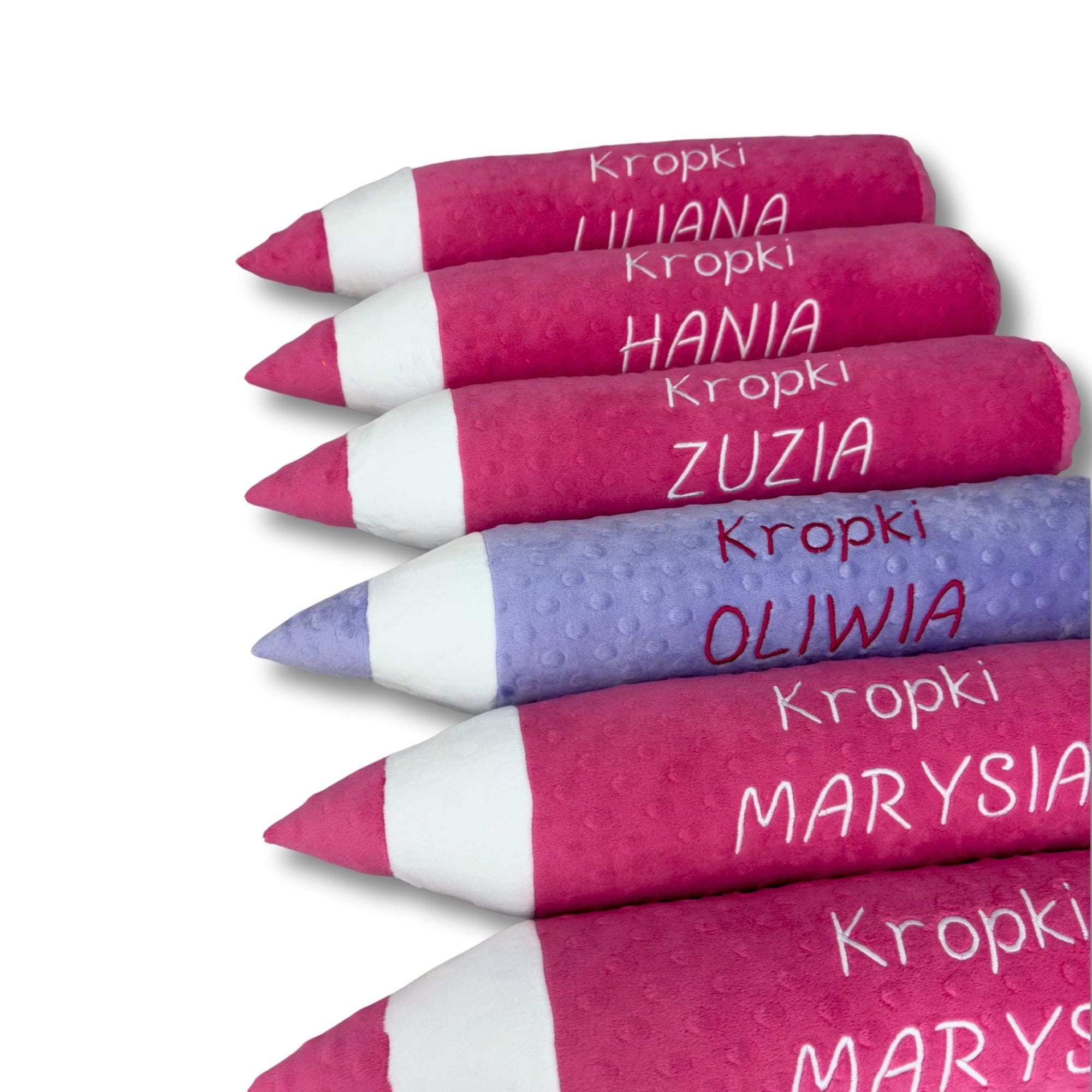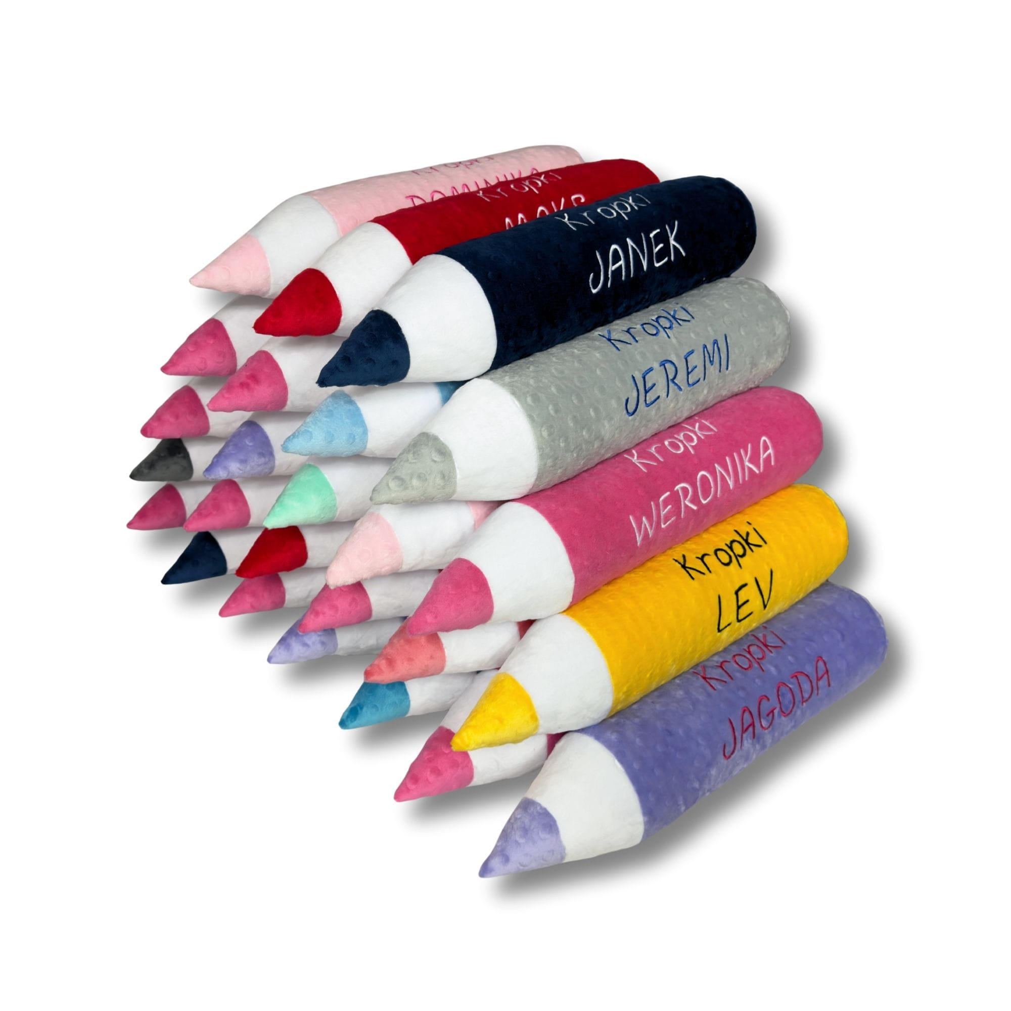 Każda poduszka kredka może zostać spersonalizowana haftem – imieniem dziecka lub nazwą grupy przedszkolnej, co czyni ją niepowtarzalnym upominkiem. Szeroki wybór kolorów pozwala dopasować produkt do aranżacji wnętrza.