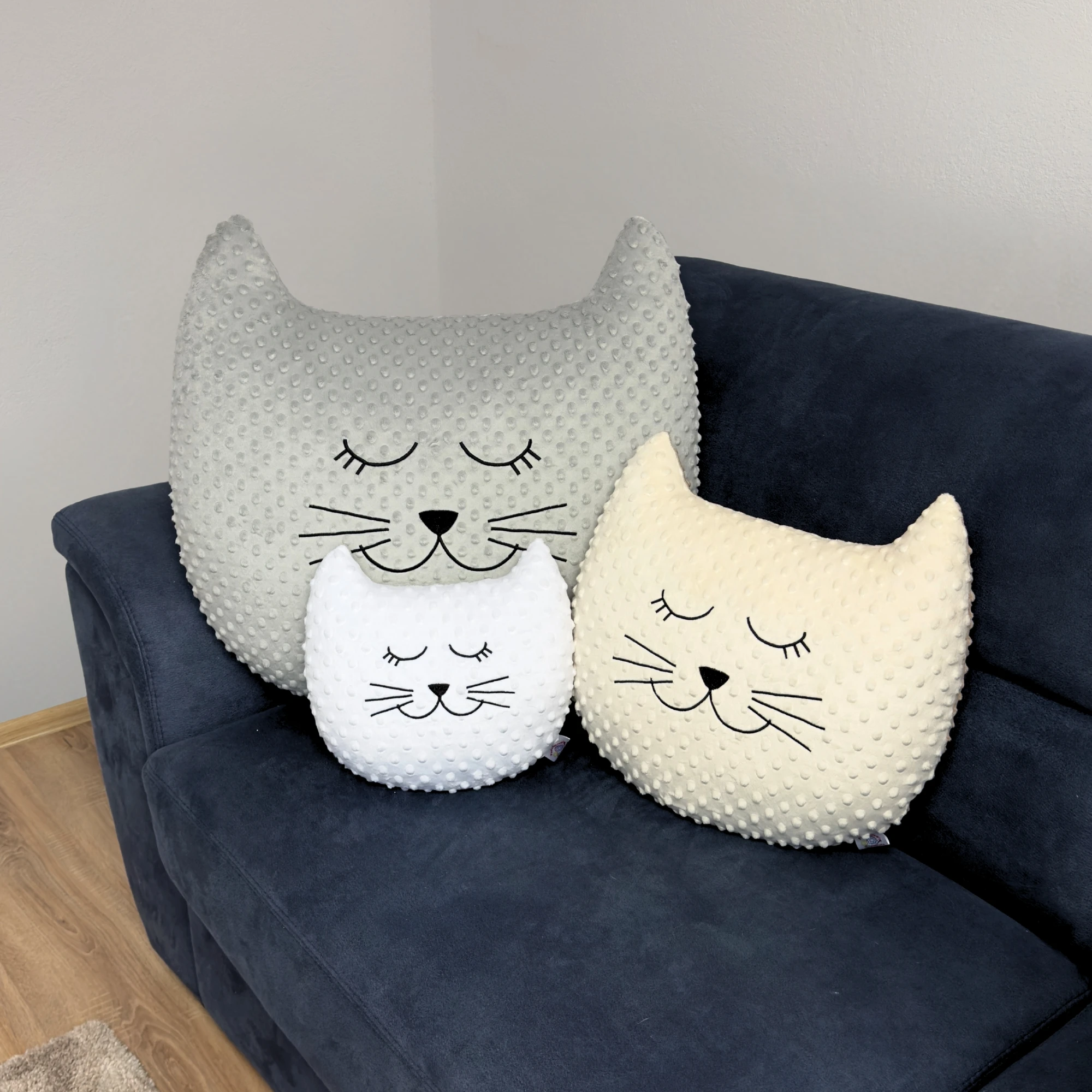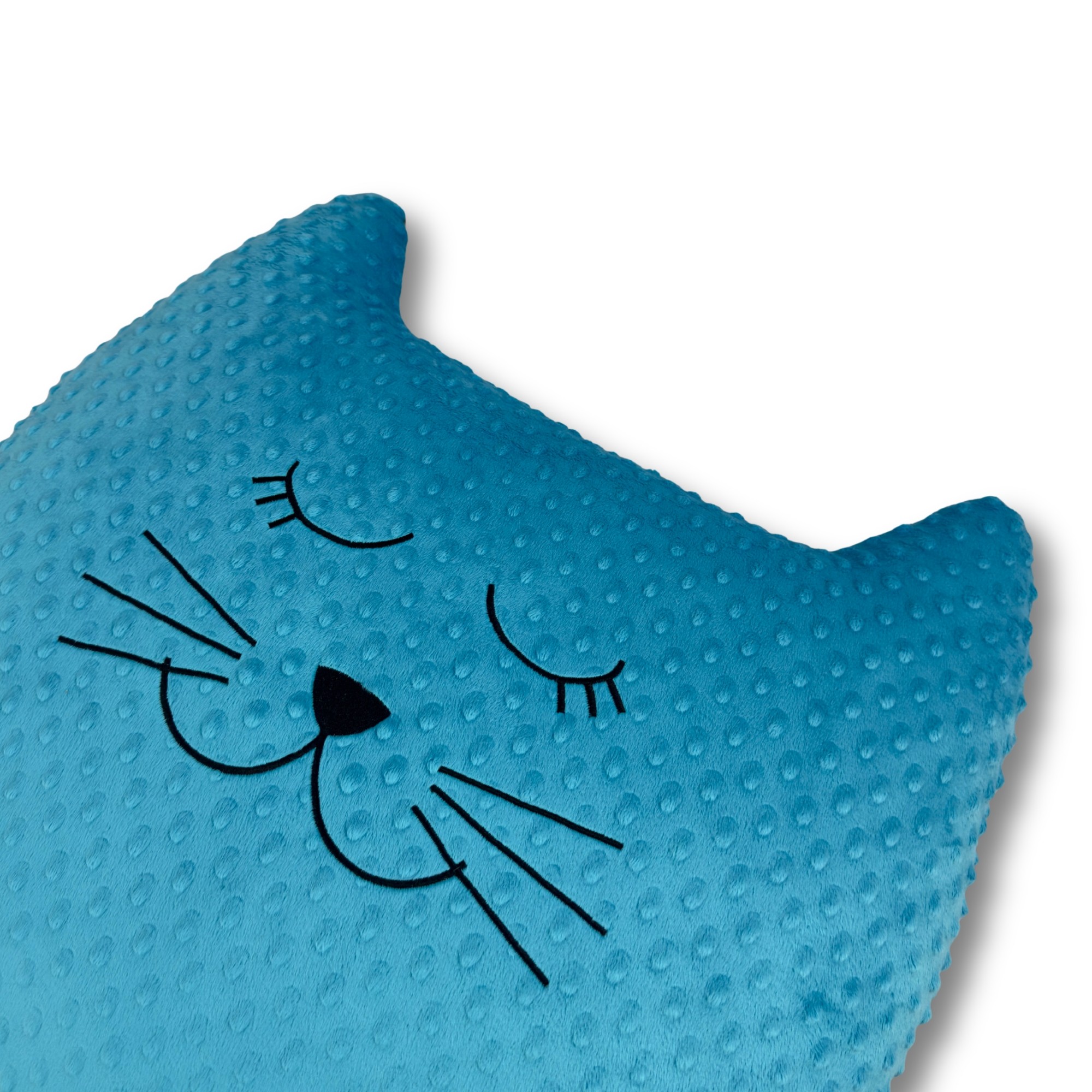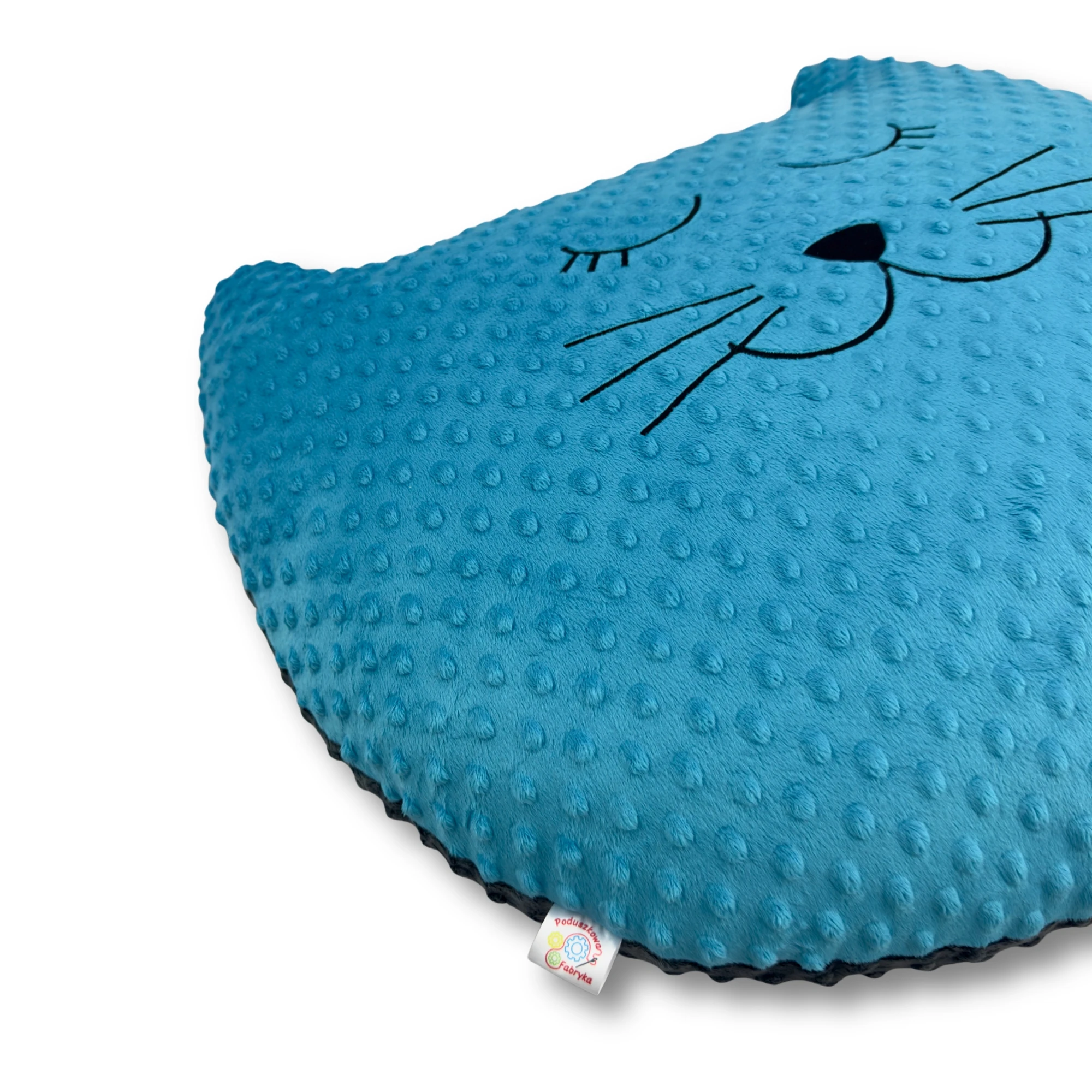 Dzięki dużemu rozmiarowi poduszka może pełnić rolę nie tylko dekoracji, ale także wygodnego oparcia lub elementu zabawy. Haftowany pyszczek dodaje jej charakteru i sprawia, że wygląda niezwykle uroczo.