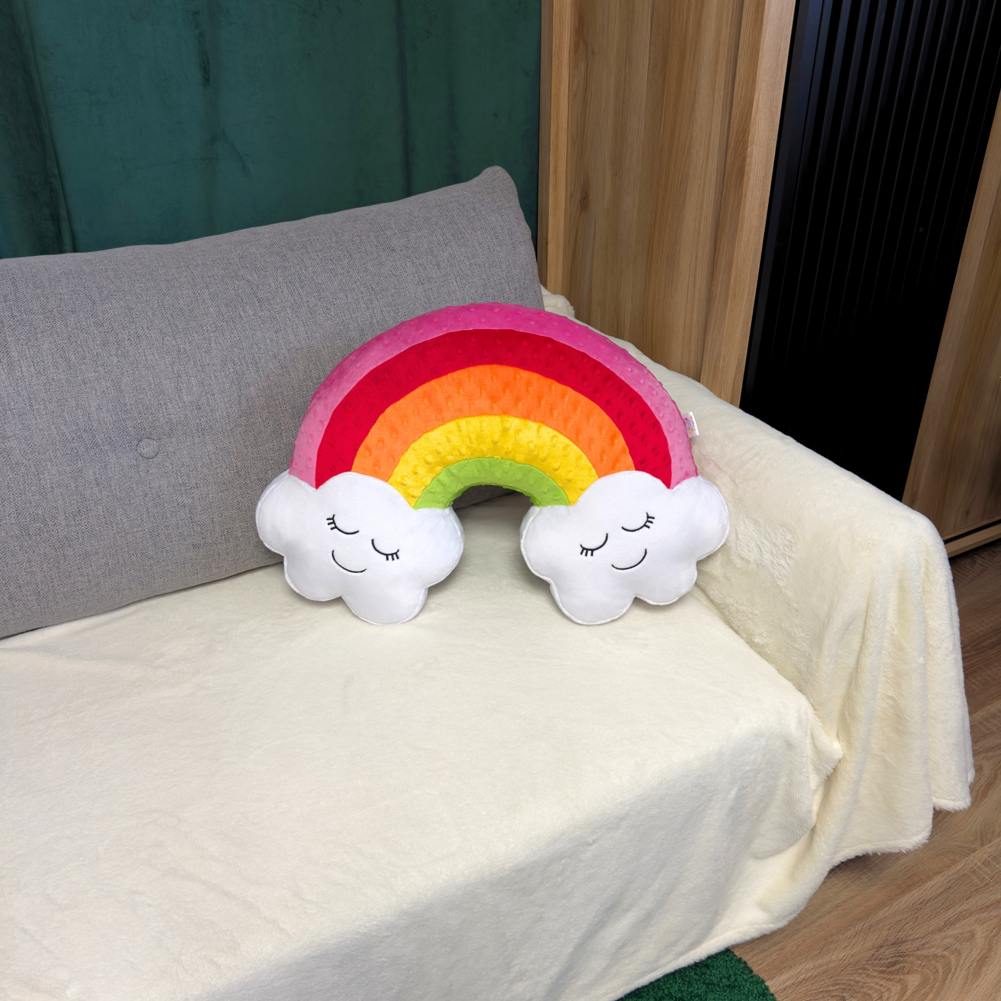 Tęcza z wesołymi chmurkami poduszka kształtka kolory do wyboru